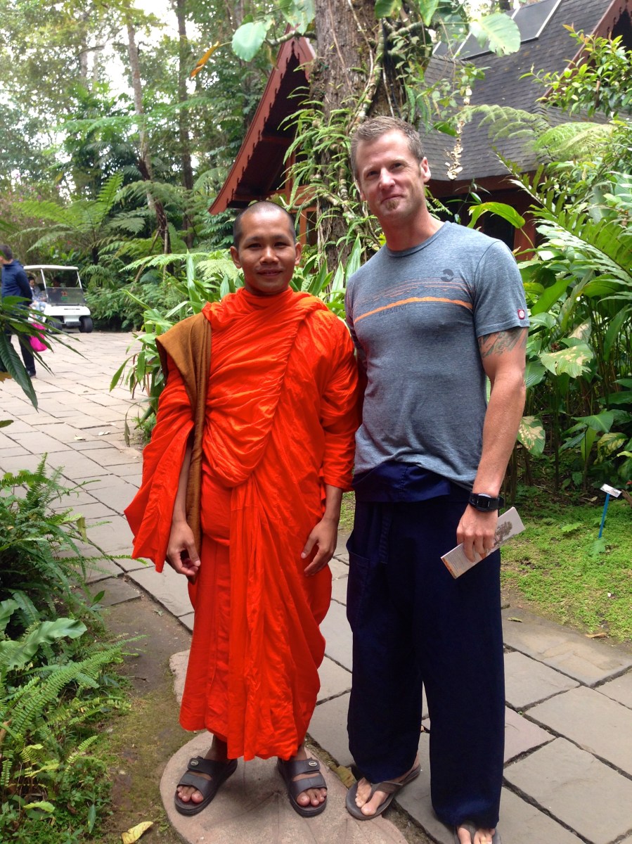 IMG_9279 Published 02/03/2014 at 2448 × 3264 This visiting monk approached E at the Bhuping, the Royal vacation palace and made friends. He said he wanted to practice English but I think it was the pants.